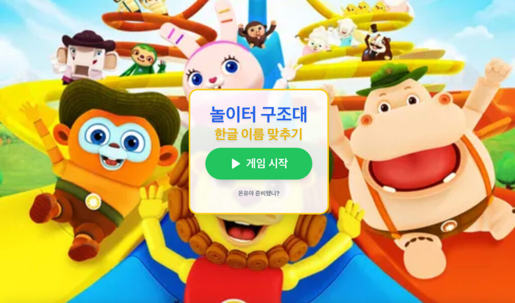 아이들에게 친숙한 인기 캐릭터 ‘놀이터 구조대’ 친구들이 총출동했습니다! 뽀잉, 빙빙, 몽바 등 개성 넘치는 캐릭터들의 사진을 보고, 올바른 한글 이름을 찾아보는 인터랙티브 교육 게임입니다.