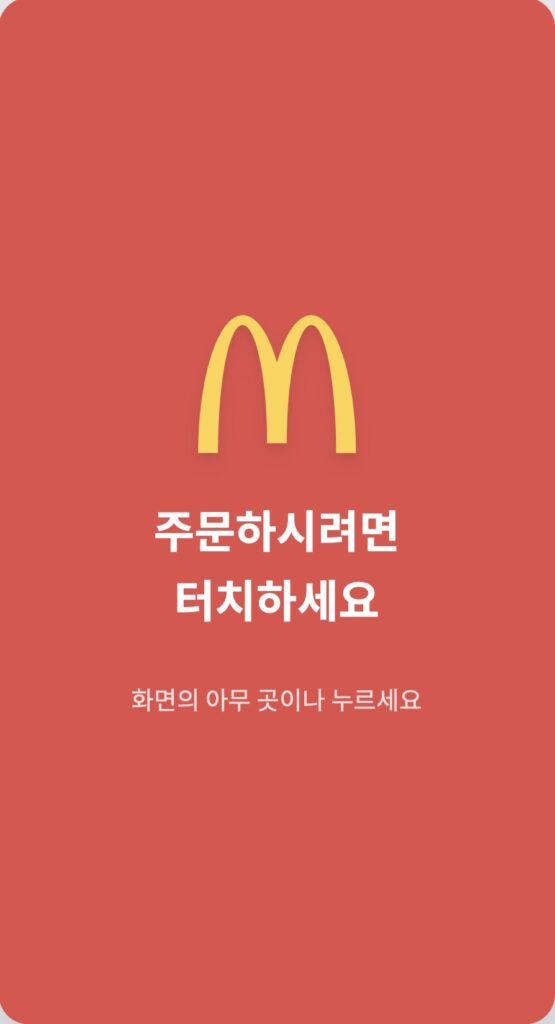 1. 화면을 터치한 후, 매장 식사 또는 테이크 아웃을 선택합니다.