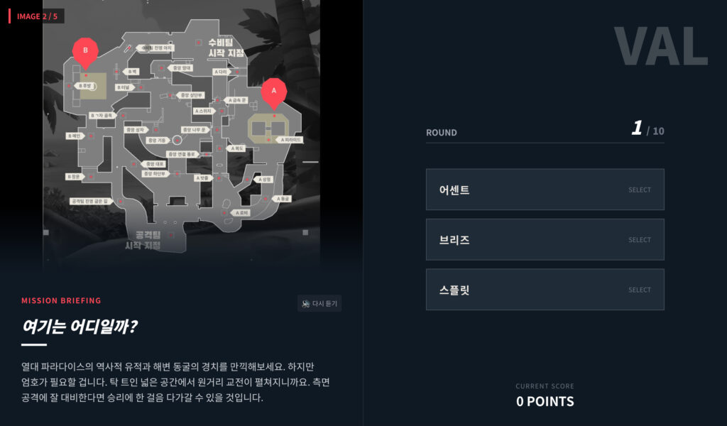 맵의 이미지와 설명을 보고 맵의 이름을 알아맞추는 게임입니다.