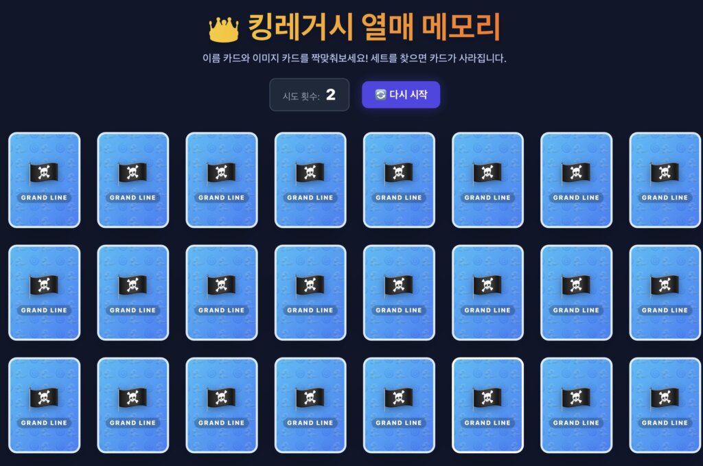 1. 뒤집혀 있는 24장의 해적기 카드 중 2장을 클릭해 앞면을 확인합니다.