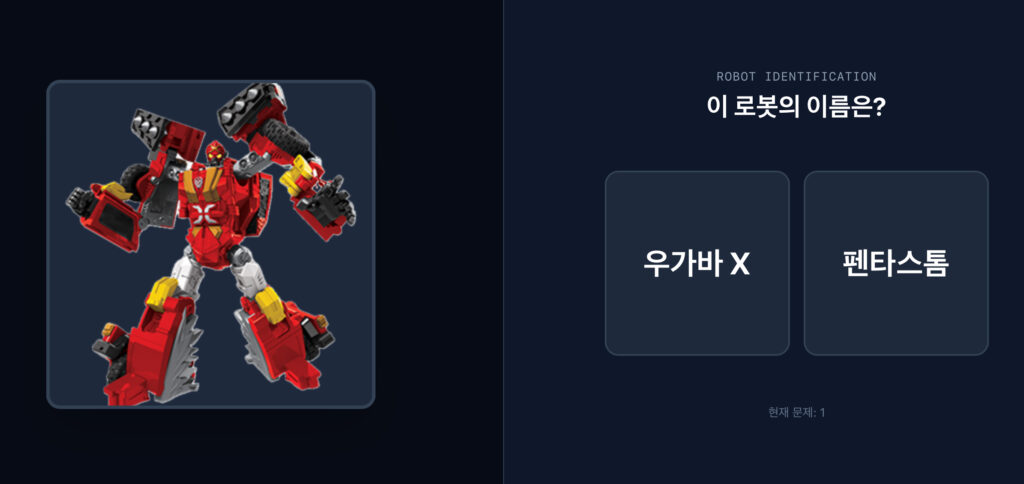 헬로 카봇 이름 맞추기 12월 20, 202512월 19, 2025 작성자: Makadamia 헬로 카봇 이름을 맞추어 보세요. 에이스 / 프론 / 호크 / 스카이 / 펜타스톰 카봇 X / 캐논 X / 폰 X / 우가바 X 아래 이미지를 클릭하면 게임이 시작됩니다. Post Views: 66